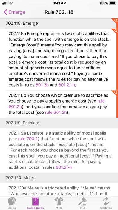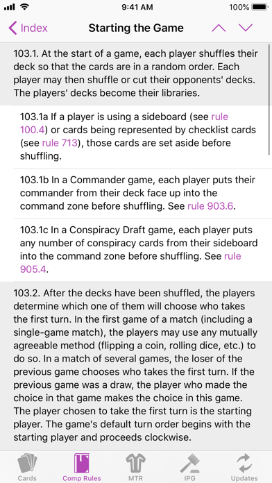 • View related rules (e.g. "See also rule 204.3h.") by tapping on them.
