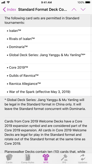• Complete text of the Comprehensive Rules, Magic Tournament Rules and Infraction Procedure Guide in an easily browsable and searchable format.