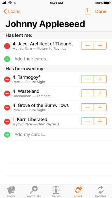 • Track cards you have lent out or borrowed from other people.