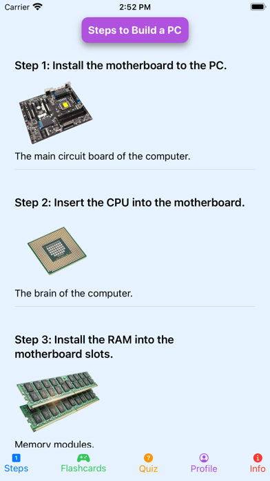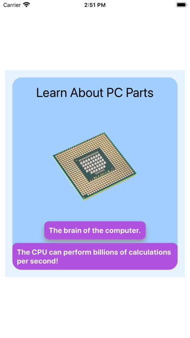 Are you ready to embark on an exciting journey to build your very own computer? "My First PC Build" is the perfect app for kids and beginners to learn about the essential components of a PC and how they fit together. Through interactive lessons, fun facts, quizzes, and step-by-step guides, you'll discover the fascinating world of computer hardware. Each component is introduced with vibrant images, engaging narration, and playful animations to make learning fun and memorable.