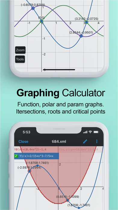 - Calculator supports function, polar and parametric graphs.