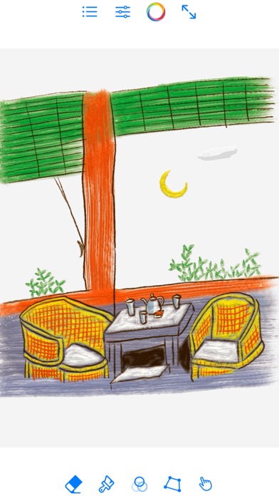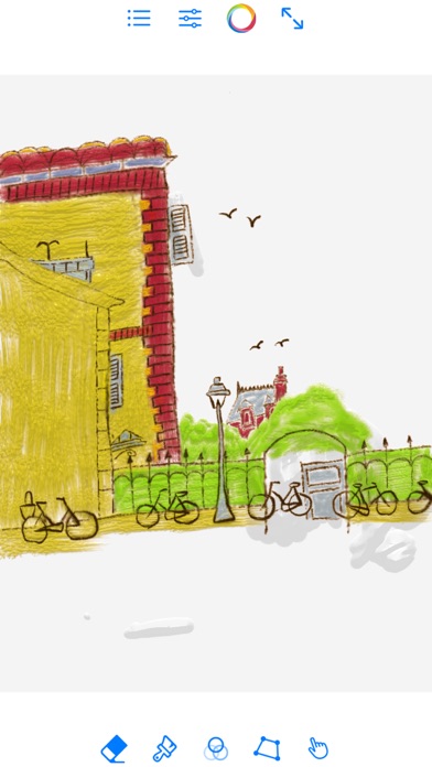 You can choose colors, use the eraser, clear the canvas, switch full-screen mode. The current project progress can be saved, and the archive can also be deleted. You can save your work to photo album or share it.