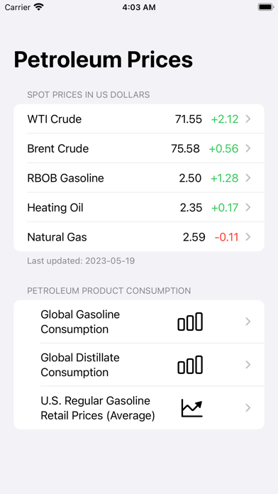 Stay informed with real-time spot prices and in-depth insights on major energy commodities, including WTI Crude, Brent Crude, Natural Gas, RBOB Gasoline, Heating Oil, and Gold. Whether you’re an investor, trader, or just curious about market trends, this app puts the latest energy data at your fingertips.