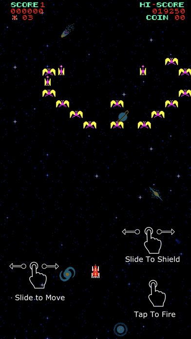 Right part of Screen -> Bottom, tap to lasers shoot. Slide to use Shield.