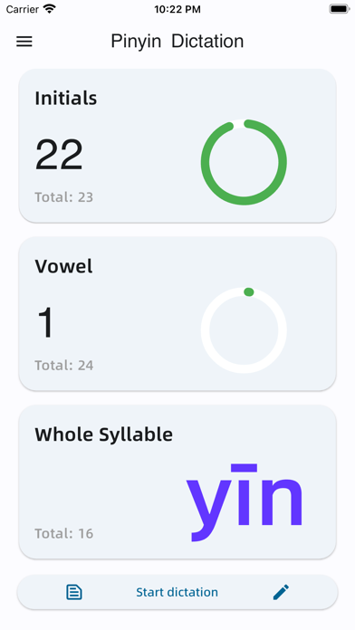 Help practice dictation of Chinese Pinyin, classify exercises, count the number of mistakes, and better master the basics of Pinyin.