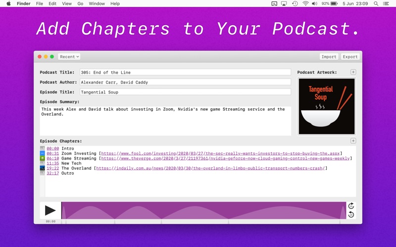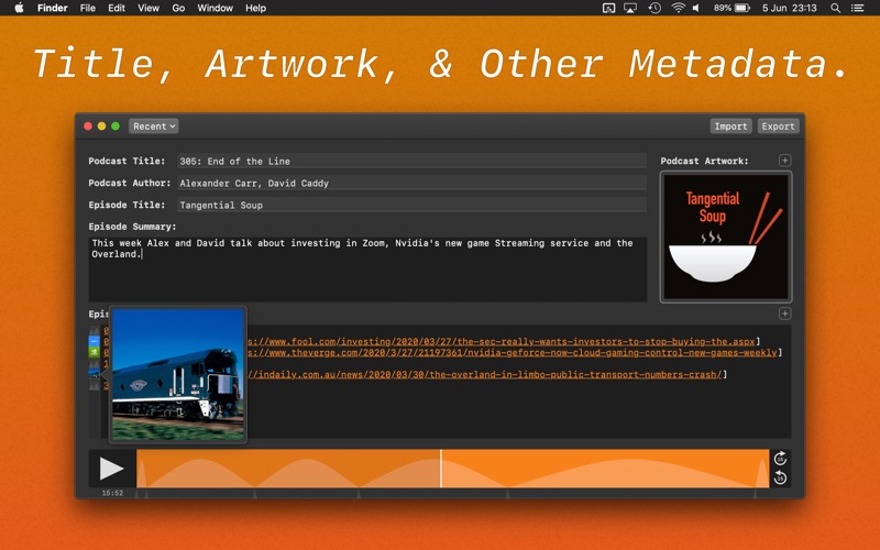 Quickly add titles, artwork, chapters and other metadata to your MP3 podcast with PodWise!