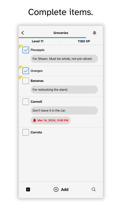 - Add optional notes to your items