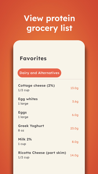 Protein food list: Our app includes a high protein food list to make your protein meal planning effortless.