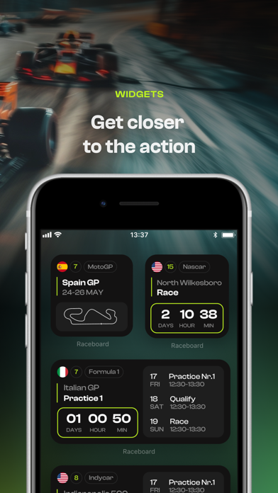 With Raceboard, immerse yourself in the thrill of motorsports like never before. Whether you're a fan of Formula 1, MotoGP, NASCAR, or any of the 10 other sports we cover, select your favourite and stay updated on all events, sessions, and results. Our intuitive widgets bring motorsport directly to your home screen, ensuring you never miss a race or session. With Raceboard, every day is race day!