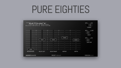 Ratshack Reverb is a detailed model of that classic of classics, the Realistic Electronic Reverb. Now, you can have the sound of everyone's first analog delay unit, without ever having to change batteries!