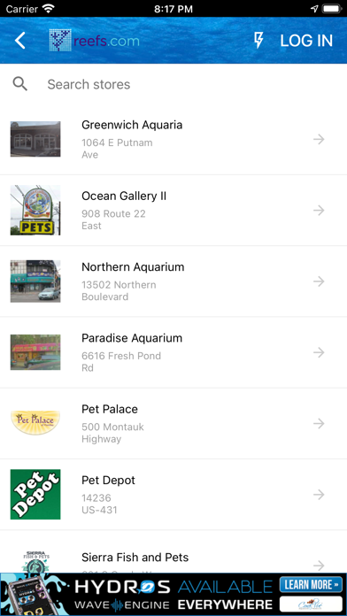 Map: It features a map of Local Fish Stores and public installations in your area (GPS), including driving directions, store hours, and recent specials.