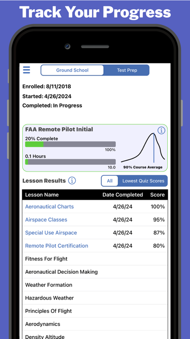 After completing the course, prepare for the FAA exam with over 500 practice questions, including actual FAA questions. FlightReady identifies your weakest areas to focus your efforts, rather than wasting time answering questions you've already mastered.