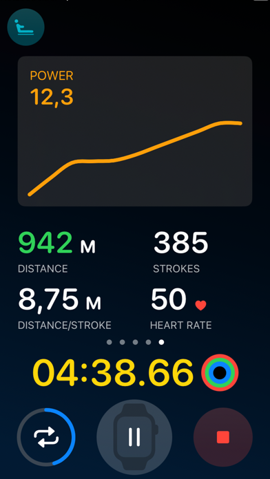 Seamless iPhone and Apple Watch Integration: While you're training on your Apple Watch, your iPhone reflects your current data, serving as a clear display for your progress. Monitor your activity rings, burned calories, heart rate, strokes per minute, speed, and more in real-time directly on your iPhone screen.