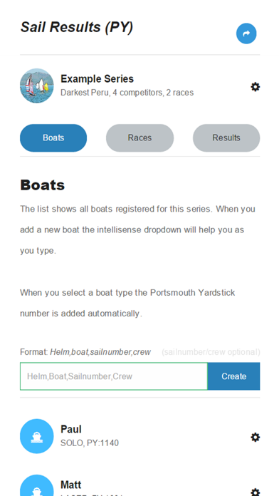 It includes the ability to add helm, crew, sail number and Portsmouth Yardstick numbers (RYA 2021 and 2019) are included but you can add your own if you want. App includes drop downs of previous competitor information so that new series/races can be added *very* quickly.