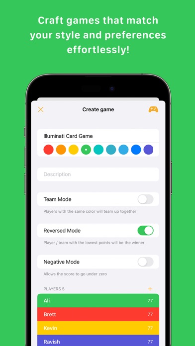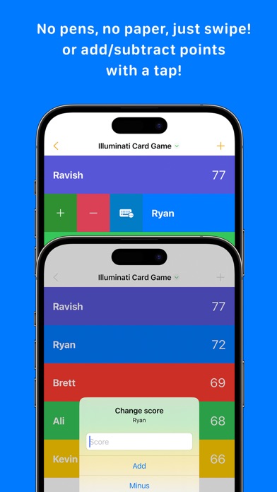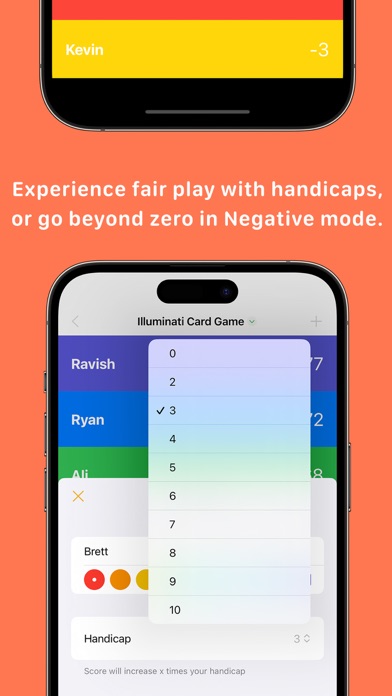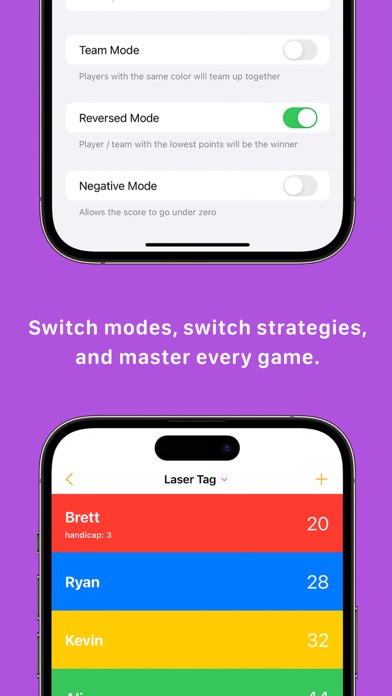 Update scores in a flash by swiping right on a player. Plus, if a player has a handicap, the app automatically multiplies points accordingly.
