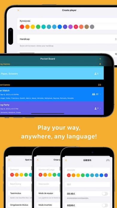 Tired of fumbling with pen and paper or trying to remember who's winning? Say goodbye to scorekeeping hassles and embrace a new era of effortless game management. Whether you're playing board games, card games, sports, or any competitive activity, "Pocket Board" is here to simplify the scorekeeping process.