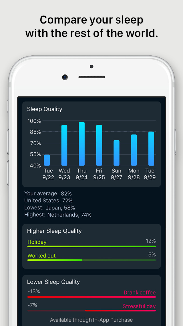 √ Sleep notes - see how events such as drinking coffee, eating too much or having a stressful day affect your sleep quality
