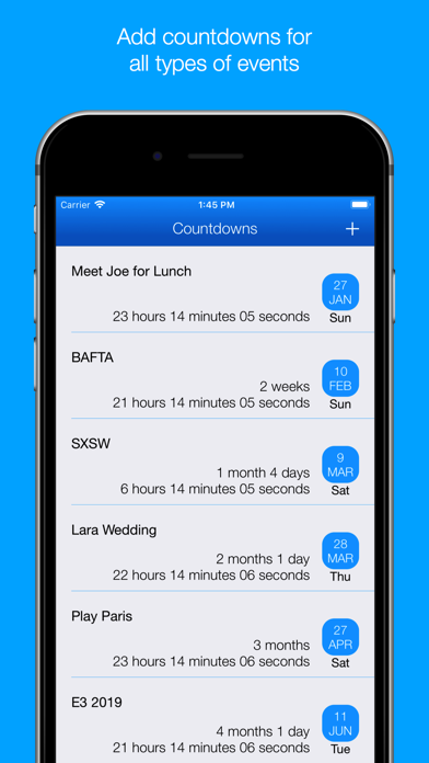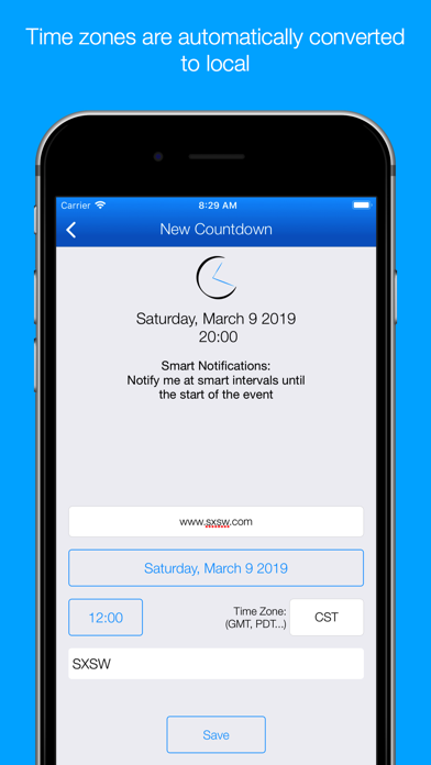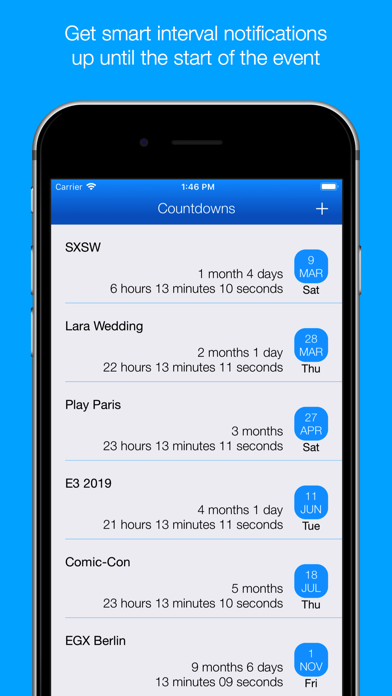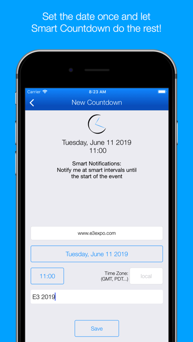 Smart Countdown will take care of the rest and remind you at smart intervals up until the start of the event.