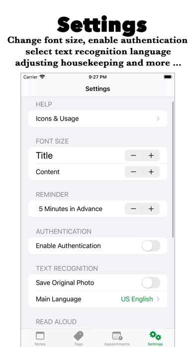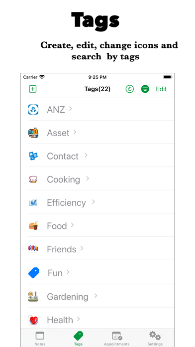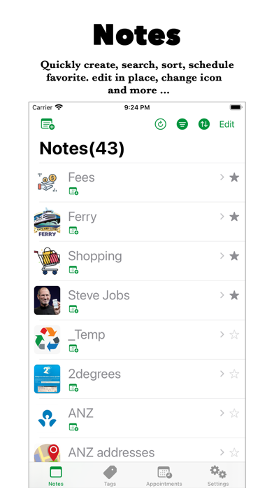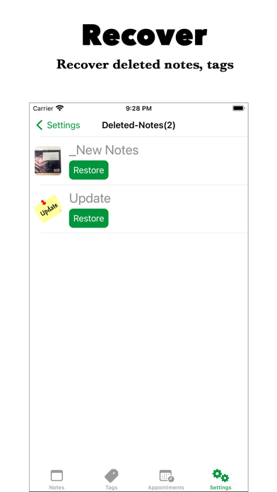 All notes, tags and images are stored in your private iCloud space, so your notes are shared among your devices automatically. It is fast, secure and always available on your devices.