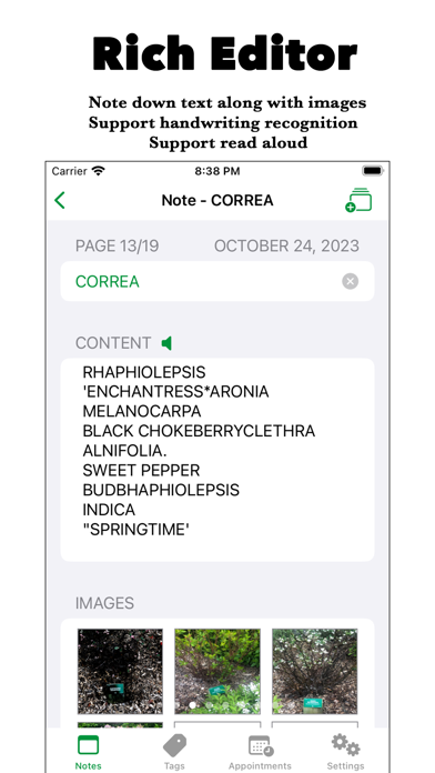 Quickly create a note along with images, support handwriting recognition for different languages, text recognition of existing images or using camera to capture texts. Upload multiple images and merge photos, save photos to album. Support read aloud what is note down. Assign tags to notes, search and sort notes, so you can quickly find the note you are looking for. Customize your notes and tags with icons of your choice. You can create multiple pages in a note to better organize your information.