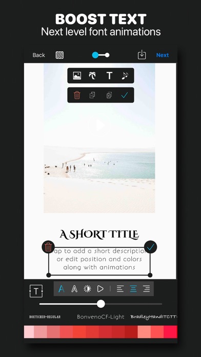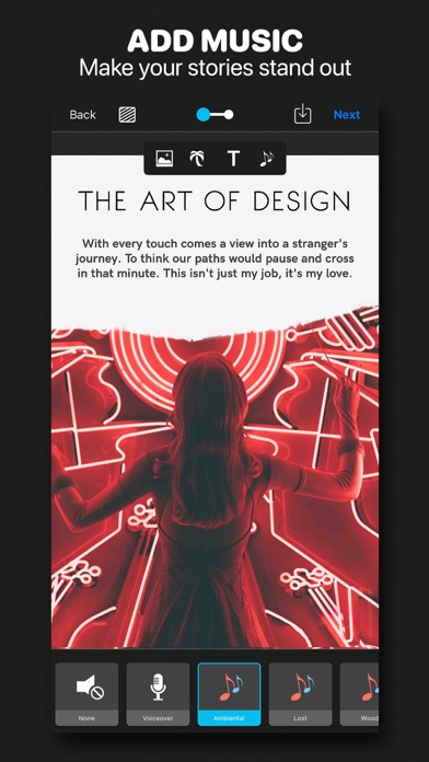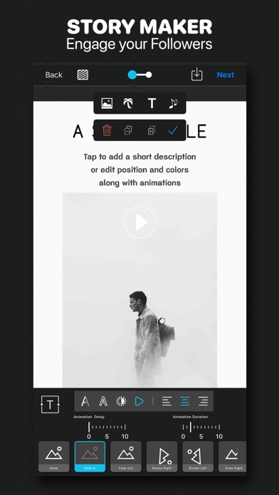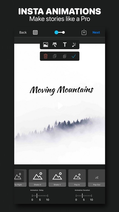 All your stories are already pre-set in the right size to be posted to Instagram, Facebook, or Snapchat.