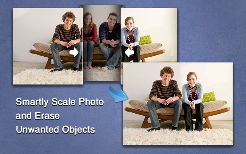 Super Eraser Pro shrinks or enlarges images to improve a composition avoiding distortion of the important parts of the image. It also can be used to remove portion of the image in a consistent way.