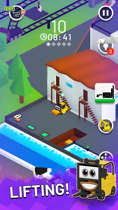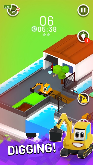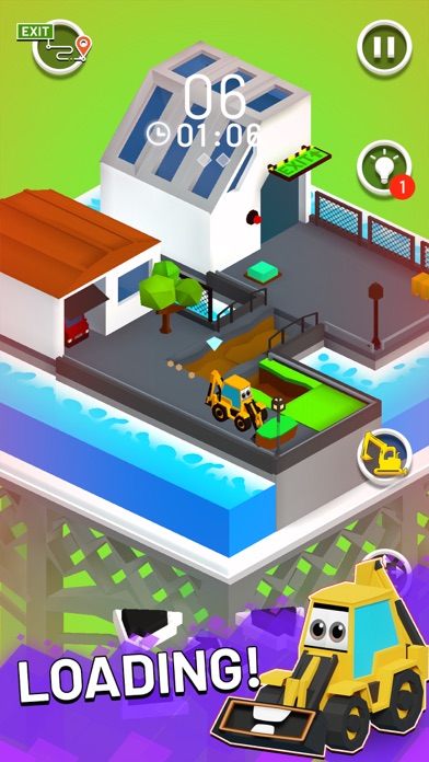 Try to pass the stages in the level by using the features of earthmoving vehicles such as LIFTING, DIGGING, DEMOLITION.