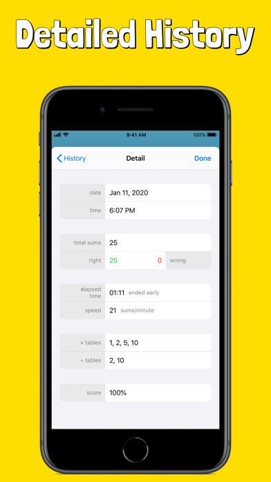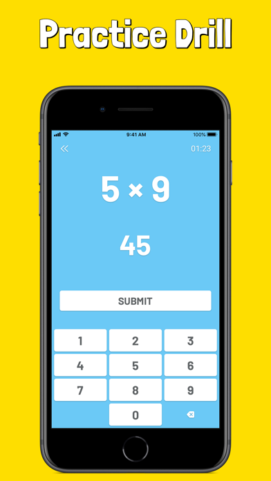 Learn to memorize your multiplication (and division) tables by doing drills on a daily basis. Choose which tables you would like to practice, set a timer and off you go. Your drill-history is also recorded for easy reference.