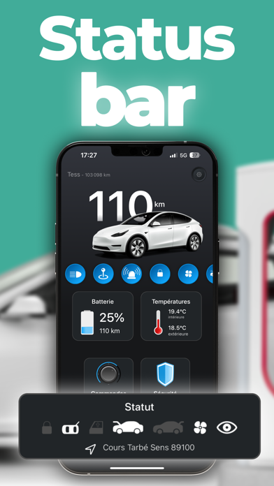 Stay informed about your Tesla's state at a glance! Find out if a door is open, whether ventilation is on, your car's GPS position, and much more.
