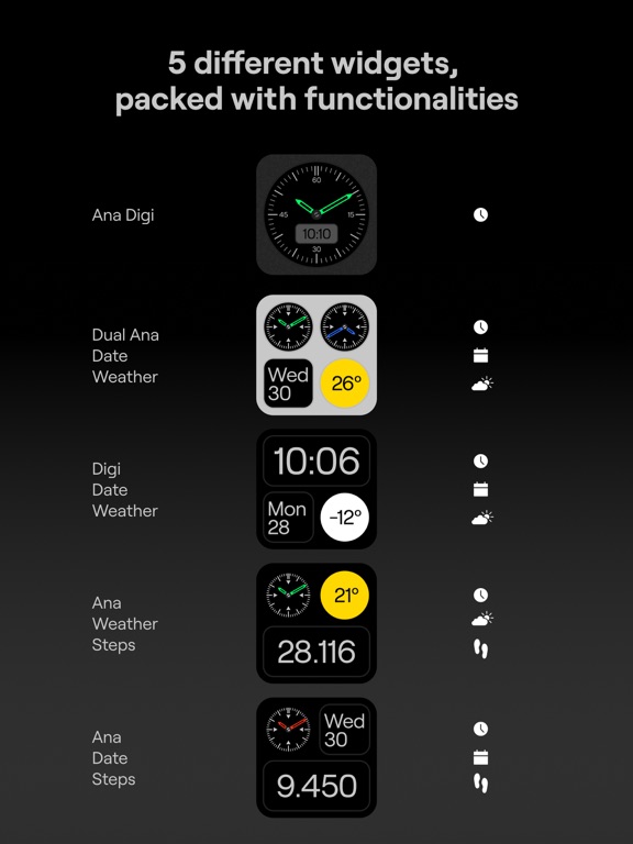 View multiple types of data—like steps, weather, and clocks—in one place.