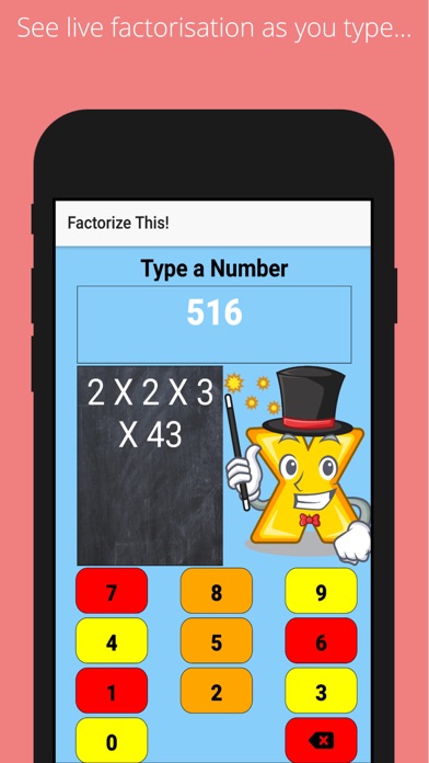 Allows your child to appreciate how any large number can be broken down into many prime factors, as they type!