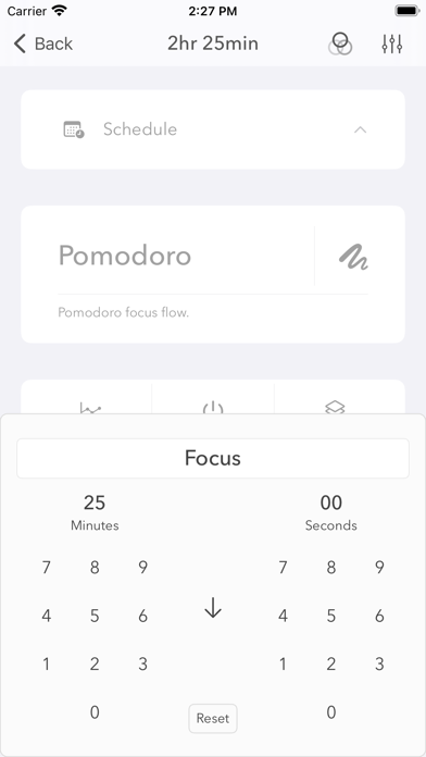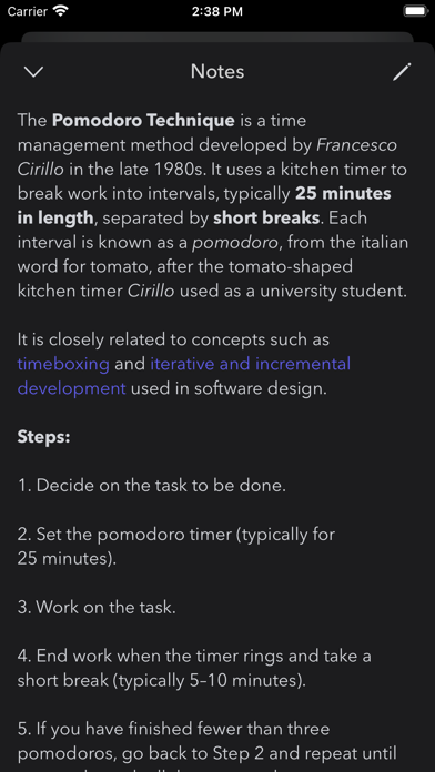 • Focus Timers — create pomodoro timers or any kind of work-break timewaves. You are not restricted to 25 minute session, you can create any sequence that suits your preferences.