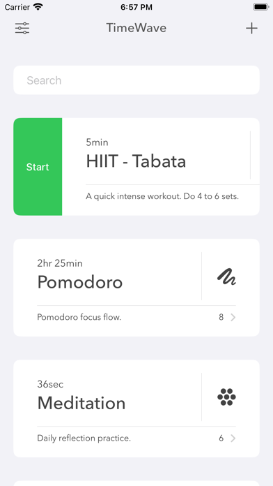 TimeWave allows you to combine your breathwork app, your workout app, your focus timer, cooking timer and much more into one single app. You can use TimeWave for: