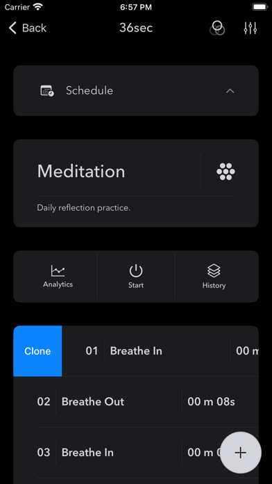 • Breathwork — build custom breathing flows like 4-7-8 Breathing to lower blood pressure, Physiological Sigh to reduce stress and anxiety, Wim Hof Breathing to increase alertness, Box Breathing to relax and much more.