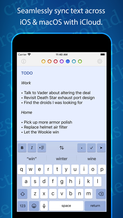 Seamlessly syncs your text across iOS and macOS using iCloud so you can capture thoughts wherever you are.