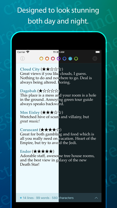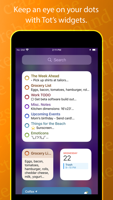 Tot’s single window design and simple formatting controls mean no more hunting for that chunk of text. Seven color-coded dots let you organize your notes while keeping them from getting out of hand.