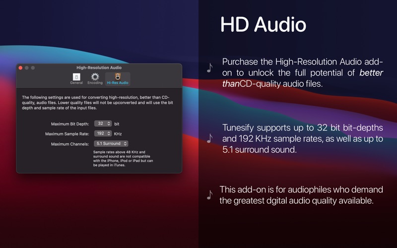 Tunesify uses the Core Audio and LAME encoders in order to ensure the highest quality audio conversions. Tunesify cannot convert files containing DRM (copy-protection).