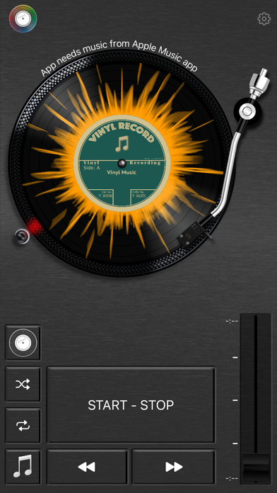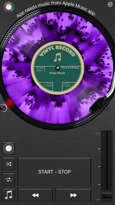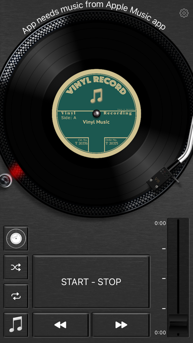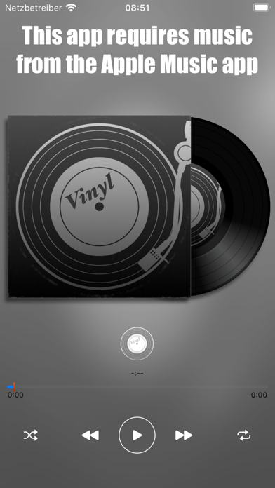 It plays your music from the Apple Music app and shows an animated vinyl record.