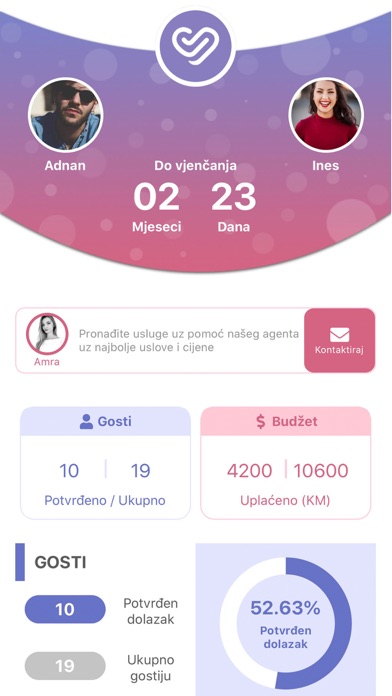 Plan your wedding together with your partner. Merge your profiles and then organise your wedding together managing guests, budget tasks and everything else.