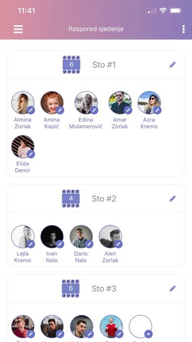 Our application will help you to create seating tables and assign guests to each table. Apart from list of all tables, you can create seating tables floor-plan which you can export to the PDF.