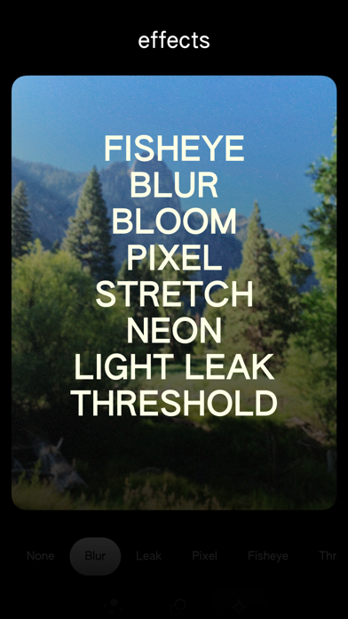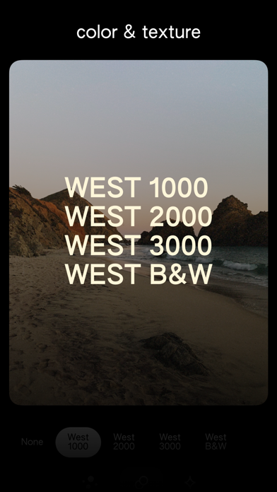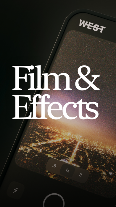 Capture and edit photos with handcrafted effects & film presets. Color photos with West 1000, 2000, 3000, and B&W. Grain and texture are applied to emulate real film. Light leaks, bloom, glitches, threshold, and more effects can make photos even more unique.