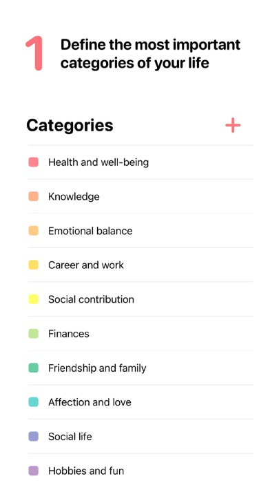 - Customizable Categories: Define the areas of life that matter most to you, from career and finances to leisure and personal growth.