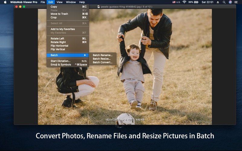 -Once you have selected the favorite photos, you can batch resize the photos, convert them into another file format, or rename the files. It enables you to export them to a new folder on your Mac. What is more, you can also remove the unwanted photos, zoom in/out the pictures, and even playback all the photos automatically in a slideshow.