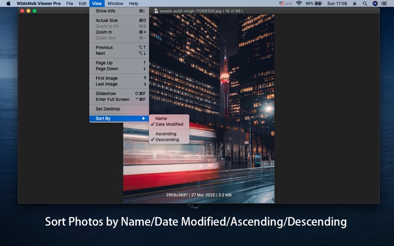 • Set desktop, reveal in Finder, enter full screen, or make a slideshow.