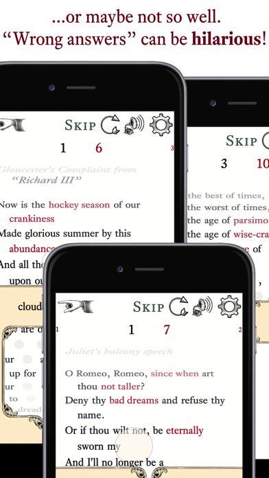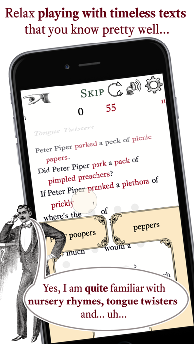 Nursery rhymes, tongue twisters, proverbs, great prose and poetry. These timeless texts are missing words. Tap the author's word and feel clever. Don’t know it? Don’t sweat it! Our ”Wrong answers” are usually pretty funny. Now you can even add your own!