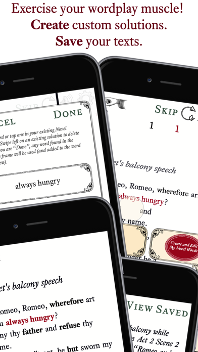 Nearly 5,000 timeless words in 50 playable texts with over 1,500 missing words and 15,000 hand-crafted Novel alternatives to select...or avoid.