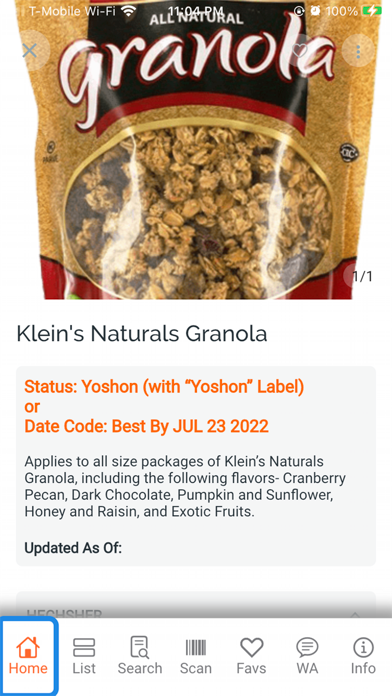 If we have the info on our site, it will come up! -- It almost eliminates the need for manual searches, with the exception of items that we have not gotten a UPC for, or sometimes general items like certain baked goods that are bought in different quantities. Once scanned, the product entry will show its date code or status, and if your package’s date is before the one shown on the app, you will know it is yoshon!