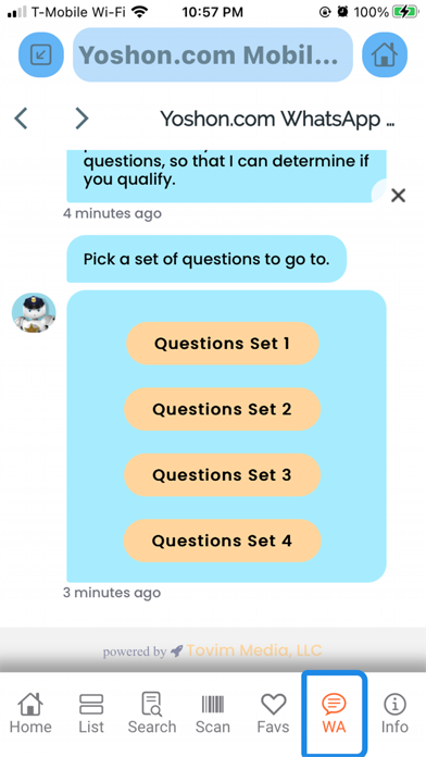 * Instant access for questions to the private Yoshon.com WhatsApp private messaging and texting at the tap of your finger.